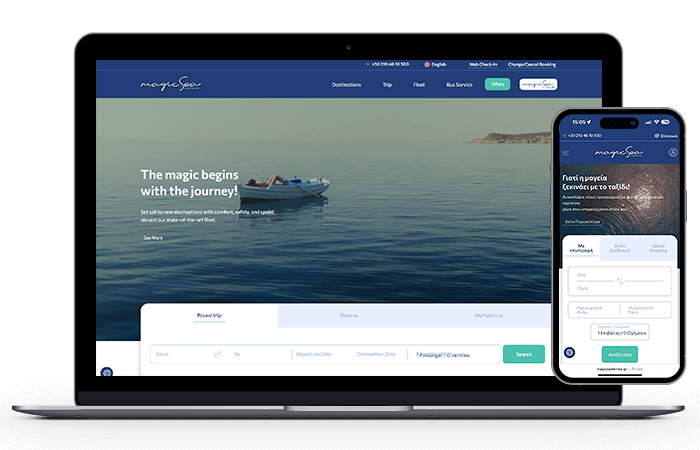 Magic Sea Ferries’ previous website no longer reflected the expectations of the modern traveler, nor the identity of a company operating across some of Greece’s most captivating seascapes. The challenge was to create a digital experience that seamlessly combines aesthetic renewal with functionality and accessibility, while delivering clear and immediate information about the fleet, routes, and destinations.